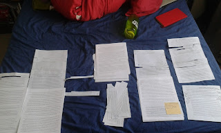 The risk, of course, is that all of the cutting and pasting and sorting out will take up so much time that the draft will be done in theory when the deadline pops up, but won't have made it back onto the computer. So far that hasn't happened, but I won't be surprised if one day I wind up hand-delivering a nine-foot sheet of taped-together paragraphs in lieu of a Word document.